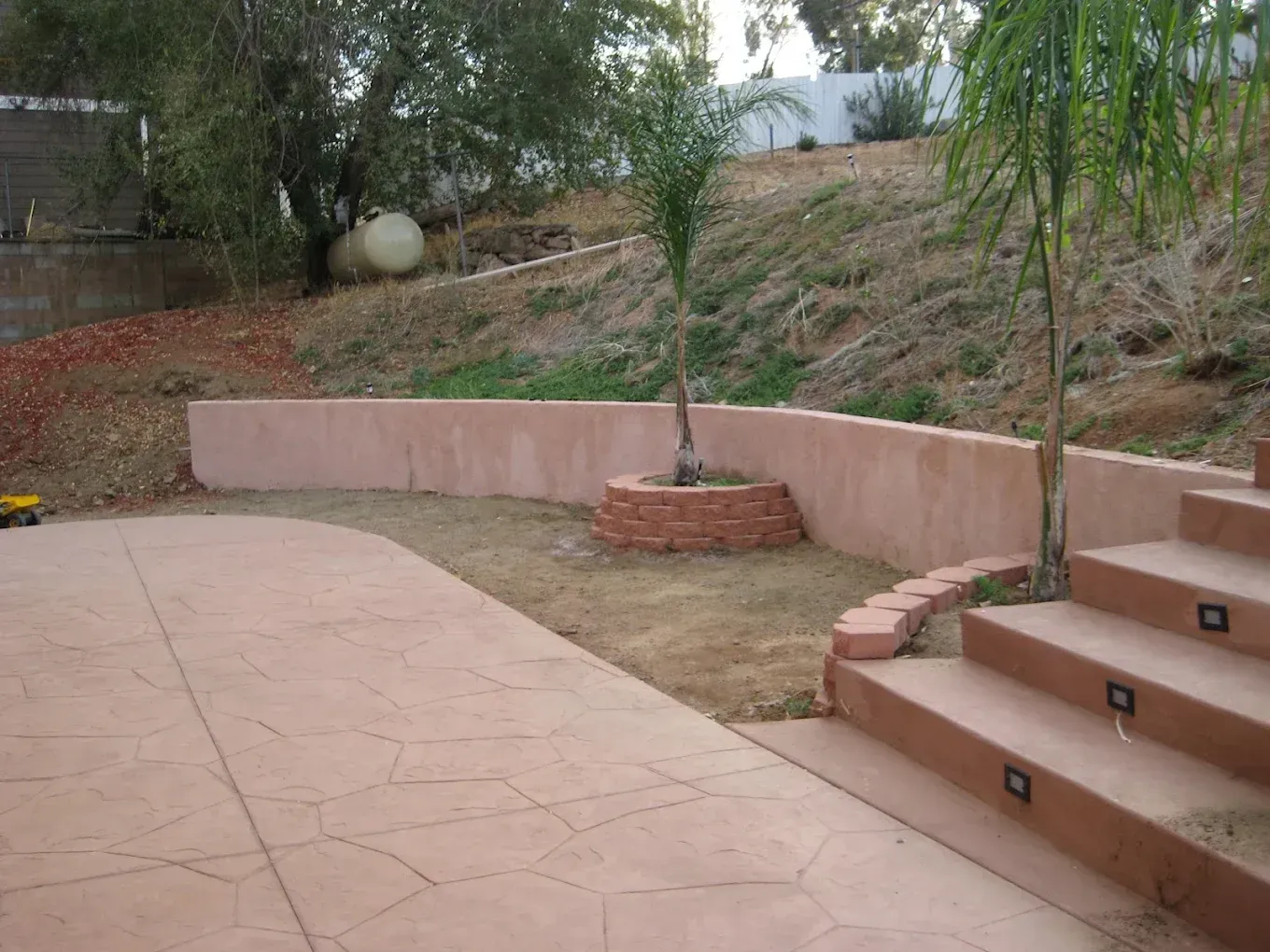 We construct concrete retaining walls for sloped properties to control soil movement and prevent erosion.